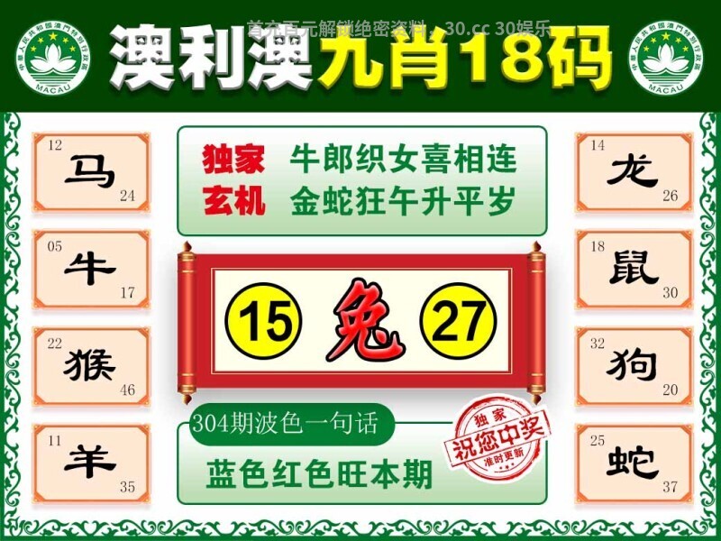 | 303期:【天肖】主【猴龙马】开:兔15准 |